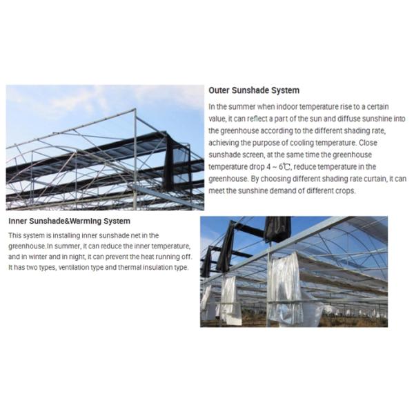 | 4 | outer sunshade system | sunshade net has different light transmission, 75%, 50%, 30%, 10%, 0% | choose according to the clients requirements |